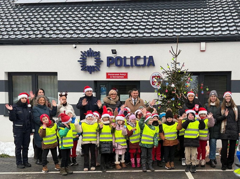 W piątek 5 grudnia słupeccy policjanci z Posterunku Policji w Ostrowitem wraz z funkcjonariuszami z Wydziału Prewencji zaprosili uczniów klas 0a i 0b Szkoły Podstawowej w Ostrowitem oraz przedstawicieli lokalnego samorządu, by wspólnie przystroić choinkę odblaskami i uroczyście zapalić lampki.