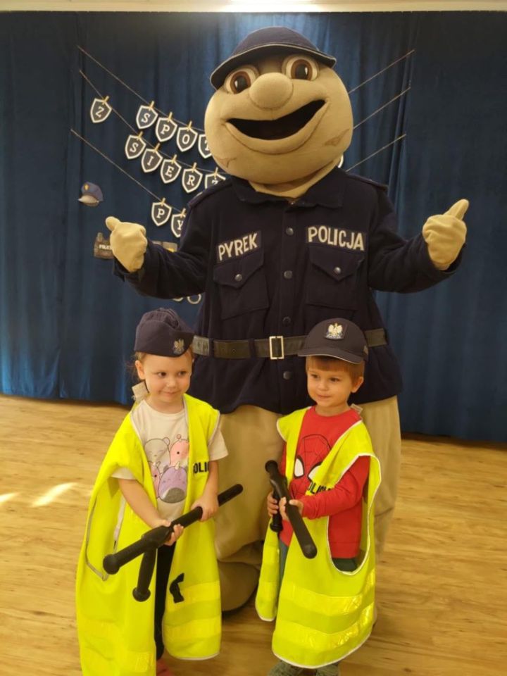 Na spotkaniu niecodziennym gościem był sierżant Pyrek maskotka Wielkopolskiej Policji która wzbudziła ogromne zainteresowanie wśród przedszkolaków Sierżant Pyrek razem z policjantami przypominał o zasadach bezpieczeństwa i zachęcał do ich przestrzegania.